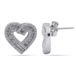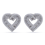 925 Silver Baguette CZ Pave Open Heart Stud Earrings