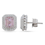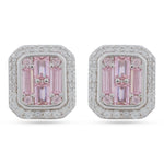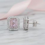 925 Silver Pink Baguette & Halo CZ Stud Earrings