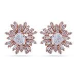 Illuminate your look with these spectacular baguette stone earrings. The starburst design features a brilliant central stone surrounded by radiating baguette-cut CZs, creating a stunning burst of light. Finished in luxurious rose gold over hypoallergenic 925 Sterling Silver, these studs offer durable.