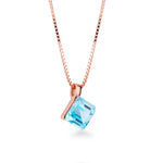 A classic solitaire drop necklace that offers a subtle yet elegant pop of color. It features a beautiful light blue (aqua or sky blue) gemstone set in a delicate rose gold tone. The timeless design makes it perfect as an everyday signature piece or a thoughtful gift.