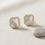Luxe Clover Mother of Pearl Silver Stud Earrings