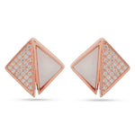 Elevate your collection with our Geometric Pyramid Stud Earrings. Crafted in highly polished 925 Sterling Silver and finished in radiant Rose Gold, these feature a captivating split design: one side shimmering with pavΓ©-set A-grade Zirconia, the other inlaid with luminous Mother-of-Pearl. Hypoallergenic and incredibly durable, they offer unmatched style and comfort for daily wear or evening glamour. Discover everyday luxury.