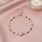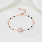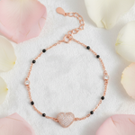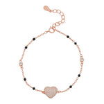 Adorn your wrist with the Rose Gold Pave Heart Bracelet. Crafted from genuine 925 Sterling Silver, this piece features a dazzling micro-pave heart charm and elegant black and clear accents. Hypoallergenic and highly polished for enduring radiance. A luxurious, versatile piece perfect for both everyday elegance and special moments. Experience premium craftsmanship.