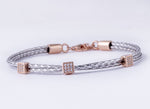 Silver Woven Cord Bracelet with Rose Gold Pave Barrel Charms