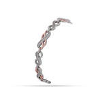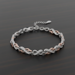 Experience enduring elegance. This captivating 925 Sterling Silver bracelet features a blend of white and rose gold tones in a polished, diamond-cut infinity design. Hypoallergenic and tarnish-resistant, it offers all-day comfort and luxurious shine. The ultimate versatile piece for daily wear or an evening statement.