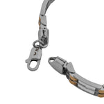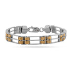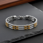 Elevate your style with the Lattice Rhapsody Two-Tone Bracelet. Expertly crafted from polished 925 Sterling Silver, this piece features striking 18K gold-plated accents for a distinguished, luxurious look. Hypoallergenic and exceptionally durable, it offers versatile sophistication for any occasion, from boardroom to gala. A timeless investment in elegance.