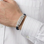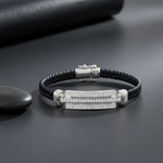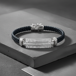 Elevate your style with the Luxe ID Bracelet. Expertly crafted in polished 925 sterling silver and braided leather. Features a stunning pave-set, diamond-cut bar for exceptional brilliance. This hypoallergenic, durable piece transitions effortlessly from business to evening wear. A modern heirloom designed for daily luxury.
