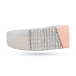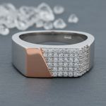 Make a striking, geometric statement with the Diagonal Pavé Signet Ring. Crafted from luminous 925 sterling silver, its bold face is split by a diagonal line of pure sparkle. Features a rich rose gold-plated section contrasting a field of brilliant pavé crystals. This hypoallergenic and durable band offers ultimate contemporary luxury for him or her.