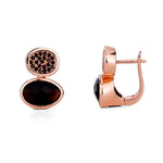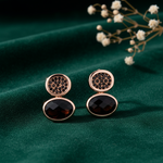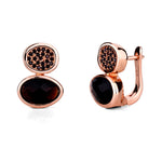 Elevate your ensemble with the Elegance Noir Earrings. Crafted from polished, hypoallergenic 925 sterling silver and finished in exquisite rose gold vermeil. These stunning drops feature dual-oval design with brilliant black pavé accents and a striking, faceted dark gemstone. Experience enduring luxury and effortless sophistication. Perfect for cocktail hours or as a chic daily statement.