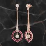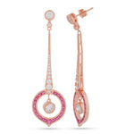 Elevate your elegance with the 'Aura' Dangle Earrings. Crafted from hypoallergenic 925 sterling silver and adorned with radiant cubic zirconia and vibrant pink stones, these rose gold-plated beauties offer unparalleled brilliance. Their dramatic, polished design ensures all-day comfort and dazzling versatility. Perfect for gala events or adding a touch of luxe to your everyday.