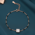Adorn your wrist with the Celestial Pave Bracelet. Crafted from premium 925 sterling silver and plated in radiant rose gold. Featuring a striking, brilliant-cut cubic zirconia centerpiece framed by delicate black spinel beads. Hypoallergenic and polished to a mirror shine for enduring brilliance. Elevate your everyday style or make an unforgettable statement. A versatile heirloom.