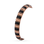 Embrace bold, modern luxury with this $925$ sterling silver bangle. Featuring alternating segments of radiant rose gold vermeil and deep black enamel, this bracelet delivers an architectural, high-contrast look. Hypoallergenic and durable, the seamless hinge clasp ensures a secure, comfortable fit. A sophisticated statement piece for the contemporary connoisseur.