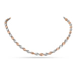 Elevate your style with the Artisan Two-Tone Link Necklace, a masterpiece of modern luxury. Crafted from premium 925 Sterling Silver with a radiant polished finish, its unique DNA-inspired links seamlessly blend silver and rose-gold tones. Hypoallergenic and exceptionally durable, this statement piece transitions effortlessly from day to evening, offering timeless versatility and brilliant shine.