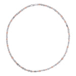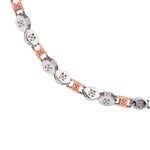 Embrace playful luxury with the Dice Link Chain. This premium 925 Sterling Silver necklace showcases unique circular links featuring geometric 'dice-dot' cut-outs, seamlessly connected by warm rose gold-toned links. The high-polish finish ensures lasting brilliance. Hypoallergenic and durable, this modern, mixed-metal piece adds an element of chic sophistication to any ensemble.