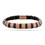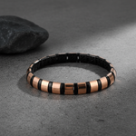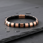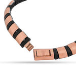 Command attention with this rhythmic, articulated $925$ sterling silver bangle. The design features a bold sequence of polished Rose Gold Vermeil segments alternating with deep Black Enamel links. Flexible and durable, this high-contrast piece is comfortable, hypoallergenic, and secured with a hidden box clasp. The ultimate modern accessory for an elevated look.
