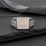 Experience the ultimate in sophisticated masculinity with the Apex CZ Statement Ring. Crafted from genuine 925 Sterling Silver and polished for an enduring high-shine finish. The striking two-tone design, featuring a rose-gold plated centre, is micro-pave set with brilliant-cut cubic zirconia for unrivaled sparkle. Hypoallergenic and durable, this versatile piece transitions effortlessly from power suits to evening wear. Define your legacy.