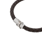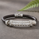 Black Leather & Diamond-Cut Sterling Silver Barrel Bracelet