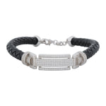 Braided Leather & Diamond Bar Sterling Silver Bracelet