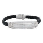 Luxe Pave Diamond Silver & Leather Men's ID Bracelet