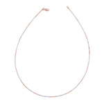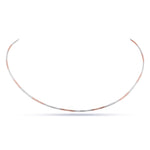 Make a modern statement with this gorgeous Mixed-Metal Structured Wire Choker Necklace. The fine, stiff wire band maintains its perfect circular shape, sitting elegantly as a collar. It features an eye-catching blend of silver-tone and rose gold-tone segments that alternate around the entire circumference, ensuring the piece catches the light from every angle. Finished with a secure, small clasp closure (likely a lobster clasp), this choker is designed for a contemporary, clean look. Wear it solo to showcase its unique mixed-metal detail, or layer it with longer necklaces.