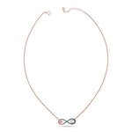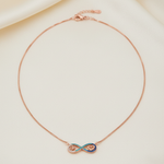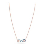 Embrace everlasting elegance with our Rose Gold-Plated 925 Sterling Silver Infinity Heart Necklace. Adorned with captivating blue and white pavé accents, this piece is both hypoallergenic and exquisitely durable. The perfect symbol of unending love and commitment, offering timeless luxury for every day or special occasions.