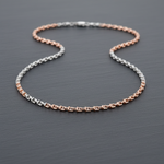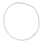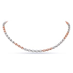 Make a sleek statement with this modern T shape joint link chain necklace. This distinctive chain features alternating silver-tone and rose gold-plated links, creating a striking two-tone look. Crafted from hypoallergenic Sterling Silver, it offers exceptional durability and a contemporary edge.