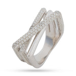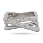 Elevate your stack with this chic three line triplet ring. Its contemporary crossover design features two dazzling pave CZ bands framing a sleek, polished silver band, creating a voluminous, eye-catching look. Crafted from durable, hypoallergenic 925 Sterling Silver, this ring offers enduring shine.
